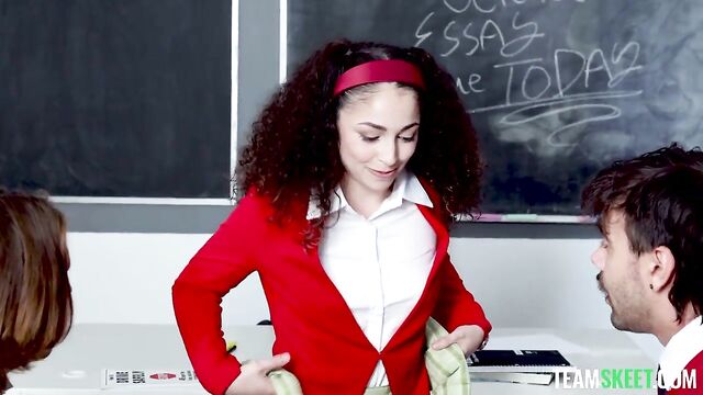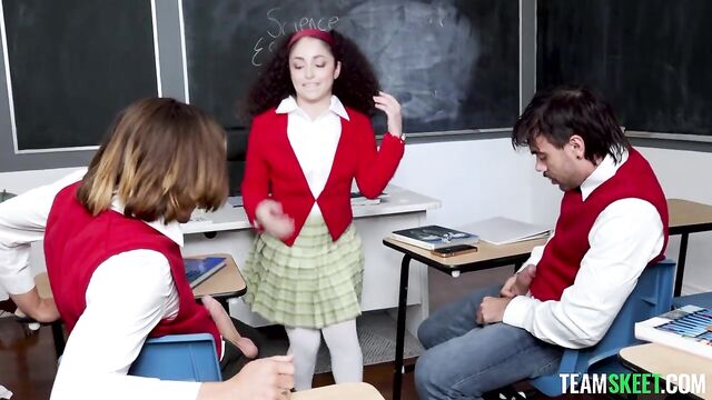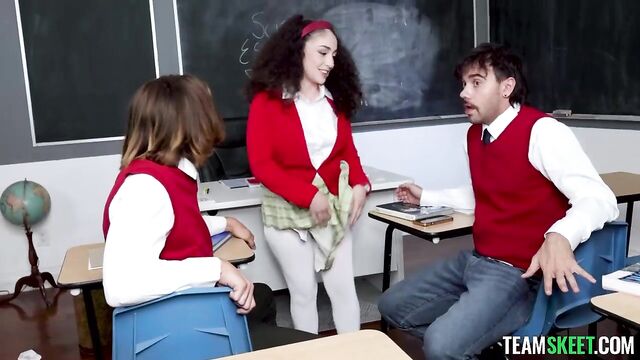 - Description: The teacher is absent today, so Pixie, the teacher’s pet, is put in charge of the class. She needs to make sure everyone writes their essays, but she is stuck with Axel and Nade, the two bullies and also the worst students in the class. Knowing her classmates won’t be able to focus, she negotiates: they’ll do a fun game first and then get to work. Pixie proposes to the boys some games, prompting the guys to tease her for being so naive. However, Pixie is so obsessed with sex that she immediately finds a way to spice the games up. Axel and Nade stop teasing her as soon as they realize they will get a kinky taste of the teacher’s pet. The game starts escalating from a series of horny challenges to one hell of a threesome that gives the boys the right motivation to do their homework.