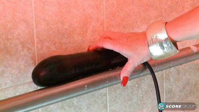 - Description: Sheri Fox takes her long, sexy red hair and big tits to a bathroom, where she gets her tits out of a Latex dress in a hurry. Actually, her tits are never really in the dress, which is good for Sheri because she loves to pinch her nipples, and doing so is a lot easier when they're not covered.