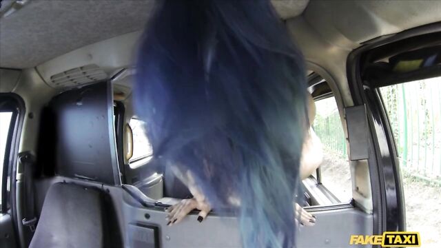 - Description: After I caught this naughty couple fucking in my taxi, the slutty wife was still horny for another dose of dick. Her husband stormed off in a rage, but that didn't bother me as I unzipped my pants and watched JoJo go to town sucking me off with her husband's cum still drying on her face!. Her husband walked back over and peeked in the window as her face was buried in my ass giving me a rimjob, but the sight of his cheating wife chased him away! After JoJo turned her small mouth on me, giving my boner a tight squeeze as she sucked on it, we switched places, and I spread her thighs open and licked her pussy. Next, I nailed this blue-haired babe good and hard, fucking her every which way on the backseat, until I sprayed her with a massive facial chin to forehead.