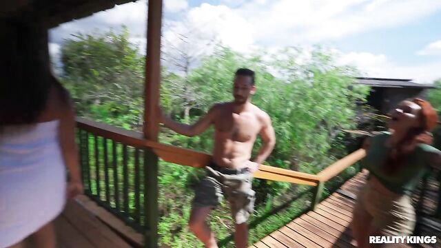 - Description: What happens in the swamp stays in the swamp! Sinatra Monroe and her bestie Teal Conrad are excited for their stay at the cabin they booked, and the airboat ride to get there. As Teal sits in her BF Lucas Frost's lap, he starts touching her boobs and even pulls them out, and Sinatra can't let her BFF be the only one flashing! The babes lick each other and shake their asses till they get to the spot, and Teal's ready for a shower. Sinatra's still horny, so she grabs Lucas for a sneaky fuck on the deck!