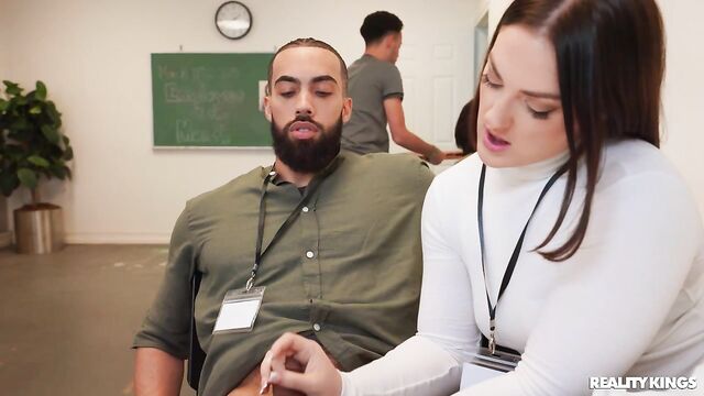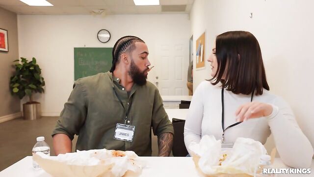 - Description: Coworkers James Angel and Lucy Lotus take their lunch into the break room. James is excited for the meatball sandwiches, but Lucy's in the mood for sausage! James can't believe it when she strokes his dick under the table, and when their coworkers leave he quickly shuts the door for some privacy as Lucy sucks him. James drills her on company time and gives her a creampie for dessert!