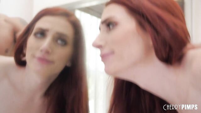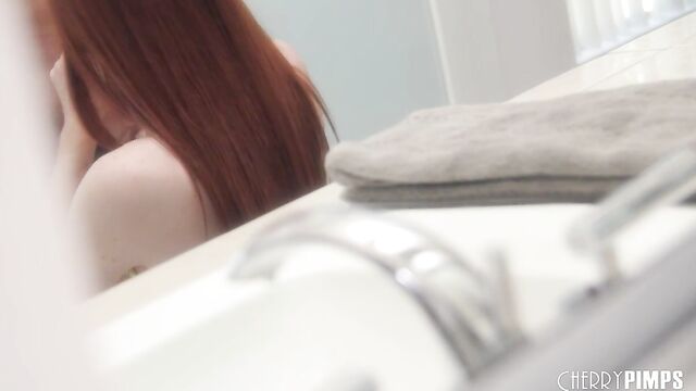 - Description: Redheaded Aria knows that Rex has something rock hard and ready for her. Surprise! It’s his big cock! She grabs hold of it right away, stroking it with her delicate hands as he kisses her deeply. She’s ready to make some moves for pleasure, so she bends down to get a taste of that hard cock. She slobbers all over, getting him lubed up for an easy slide into her lips. It isn’t long until he’s ready to strip down this beauty and revel in that shaved pussy. He gets a taste while she moans loudly on the bathroom counter. It isn’t long until she’s ready to sit on his cock and watch themselves with delight as they fuck, in the mirror.