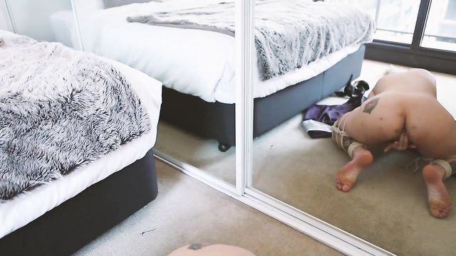 - Description: Kinky Violet Devine, a sizzling-hot, heavily tattooed bleach blonde, demonstrates her boss-level rope bondage skills in this explicit fetish fantasy. We find her on a terrace, wearing an elegant black dress and strappy spike heels, when she receives a message from her Master, saying it’s time to let her hair down and she "knows what to do". Ever the obedient submissive, Violet takes off her heels and changes into a kimono. This is soon removed as she gazes into a large mirror, revealing her small, perky breasts and prominent stiff nipples. She unravels a braid of bondage rope and sets about binding her legs from thigh to ankle, Japanese shibari style, so they are bent double. This has the added effect of splaying them to expose her pussy – shaved with a landing strip on her mound. Then, as she rocks back on her ass and begins to masturbate, she flaunts her bare feet, toes pointed, and her fingers rub and probe her pink – her nails are pedicured and manicured to complement her vampish lipstick. She’s soon in the throes of pleasure, kneeling and moving within her self-imposed restrictions as she plows her snatch. On her knees, head bowed, her ass, bound legs and bare soles are reflected in the mirror as she nears orgasm, and her breath comes in short gasps and moans as she takes herself all the way. As she comes back down to earth, she grabs her ass for a soothing massage, then caresses her gorgeous body and flashes a smile as she relaxes...