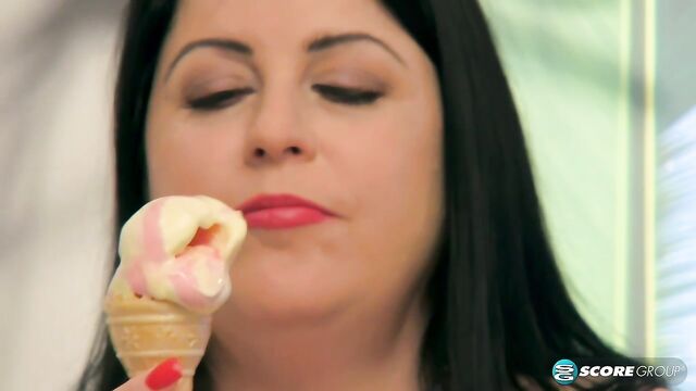 - Description: Natalie Fiore has cravings for sweet things as any pregnant woman does. She yearns for the taste of something creamy. Some ice cream might satiate Natalie. A cone is brought to her. She licks the sugary goodness with flicks of her long tongue.