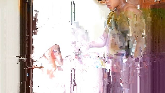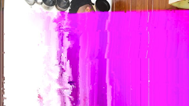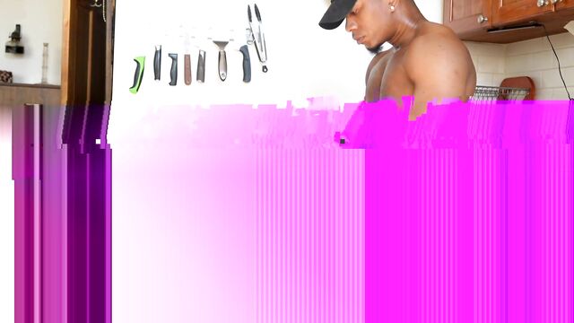 - Description: A hot and horny Latina is working in the kitchen and her big, black bull knows that she wants to be interrupted. That's because she's not wearing anything but an apron and she's just waiting for him to come up behind her. All he has to do is touch her and she throws her bare foot up onto the stove so he can reach down and finger fuck her fat pussy for her. Then she kneels right on the floor to deepthroat his BBC for him. Once he's lubed up with her spit, he bends her over and jack hammers her pussy from behind until she cums all over his thick and throbbing shaft.