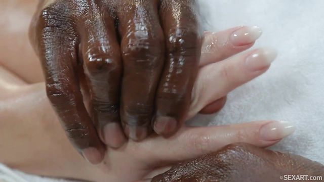 - Description: Cute blonde Lovita Fate indulges her sensual side in episode four of Nik Fox’s erotic series "The Ultimate Massage." Ebony stud Joss Lescaf works on her shoulders first, then pours oil over her back as she lies naked on the massage table. He kneads the pigtailed babe’s hot ass with his strong hands, then pours more oil down the crack of her ass, making her gasp. As Joss spreads Lovita’s thighs and strokes her shaved pussy with slippery fingers, her breathing grows heavy. He leans over the table and she grabs his cock, freeing it from his pants and stroking it until it swells to its full impressive length. Wrapping her lips around the head, Lovita starts to inch it into her mouth, opening wide to take it as deep as she can manage. She moves into doggy so Joss can slide his huge cock into her oiled-up pussy from behind, making her moan with each deep thrust. He holds still so she can rock her pussy back onto his thick shaft over and over, then turns her into spoons to drill her harder. Joss eats the freckled sweetie’s juicy pussy, lapping at her pierced clit, then feeds his massive dick back into her in missionary, fucking her to a blissful orgasm before she jerks his hot load over her pussy.