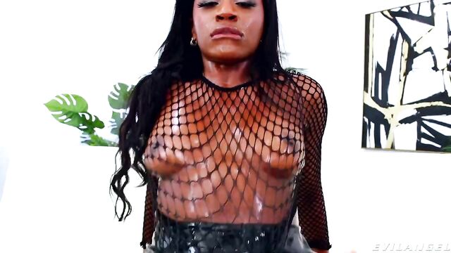 - Description: Mocha-skinned hottie Nicole Kitt wears a fishnet top with a latex skirt, matching panties and high-heeled boots. Her perky nipples protrude freely from her top. Nicole pours clear oil over herself and masturbates. The oversexed babe fondles her wet pussy and crams a dildo up her ass. Enter heavily hung stud Vince Karter, who jams his big cock into her twat. Nicole's glistening booty bounces to the rythm of intense thrusts. Anal sex is next on the menu, Nicole whimpering as Vince douses her in lube and slowly penetrates her rectum. He gradually goes harder and harder. Vince cuts a hole in Nicole's skirt and sodomizes her through the latex! Decadent, oil-soaked buttfucking includes serious rod riding, rectal gaping, and dick/dildo double penetration! Nicole rims Vince and gives a nasty, ass-to-mouth blowjob. Vince finishes her off with a stellar cum facial. Covered in spit, oil and hot sperm, Nicole slurps Vince's cock one last time, saying, 'Thank you for the cum!'
