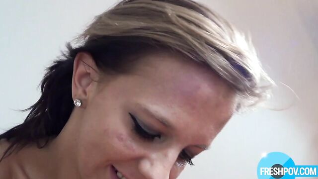 - Description: Dive into this steamy POV blowjob flick from Freshpov, where busty brunette Jana Fresh, with her long flowing hair, natural big tits, shaved pussy, belly piercing, upper lip ring, and sexy tattoos, gets down on her knees for Antonio Ross. She teases his throbbing cock with her pierced lips, stroking it hard while slurping sloppily, her massive boobs bouncing as she wanks and sucks like a pro. Begging for a hot load on her curvy body, she opens wide, but he blasts cum straight into her mouth instead. Shocked and pissed, she spits it out, yelling "that's not the deal!" Watch her raunchy reaction in this cumshot explosion, full of piercing stares and tattooed temptation.