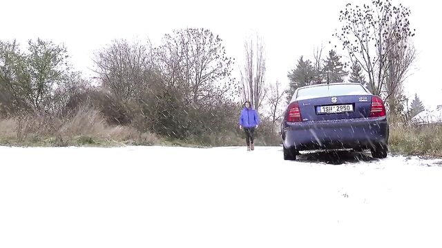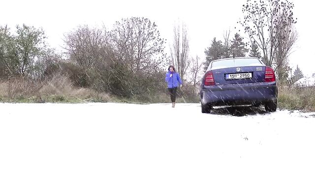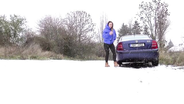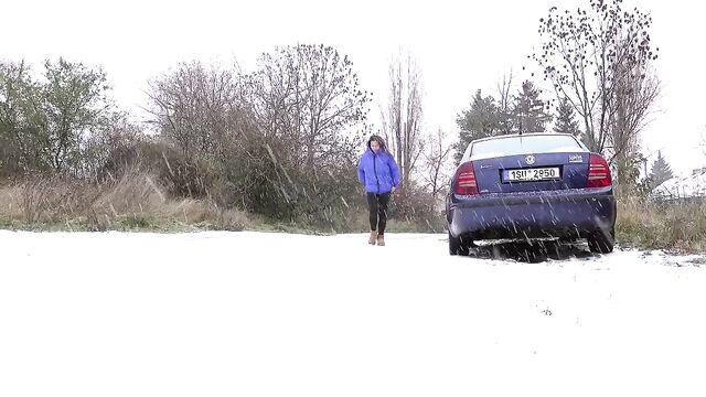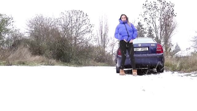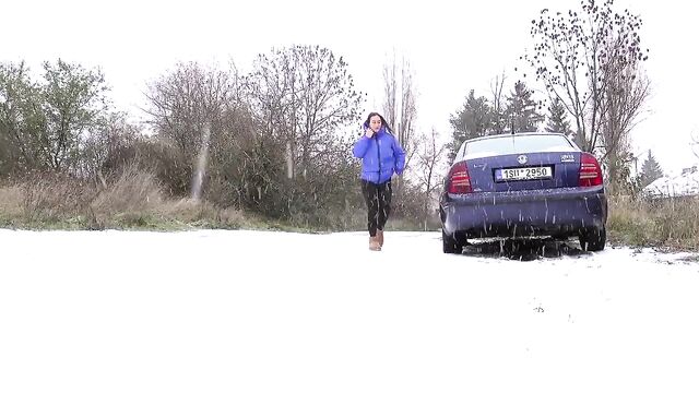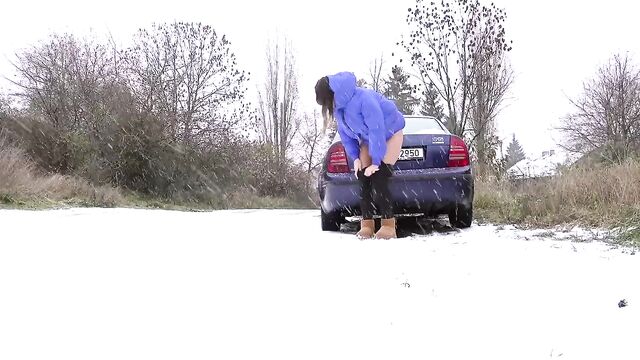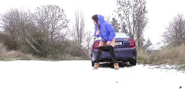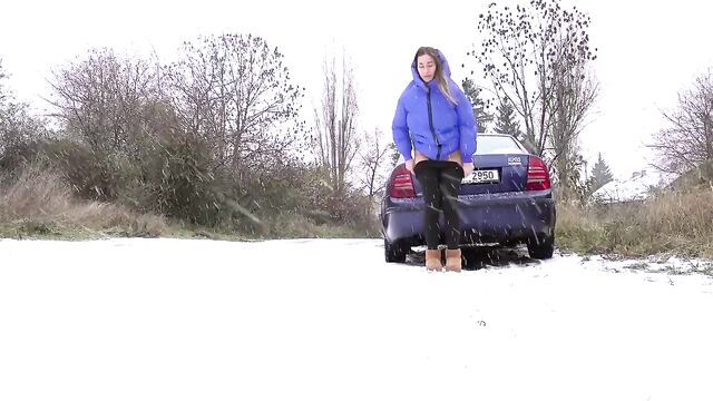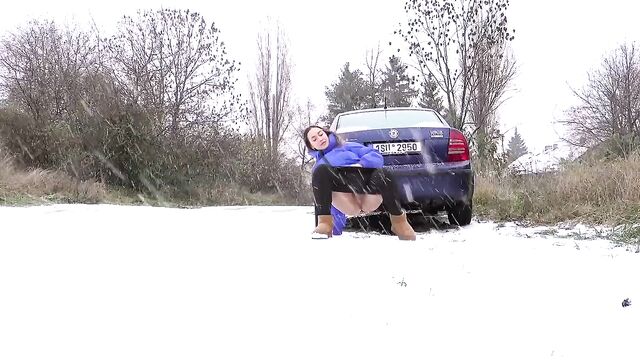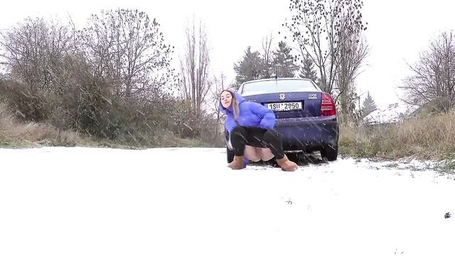 - Description: Watch hot pissing on a snowing public place