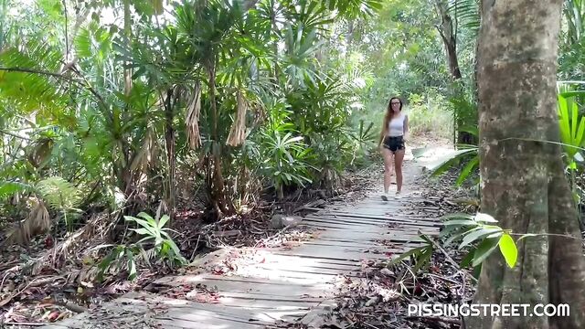 - Description: Sexy brunette loves to pee in public place