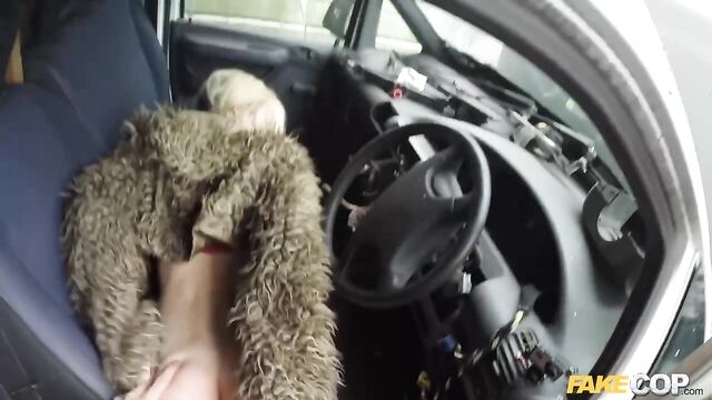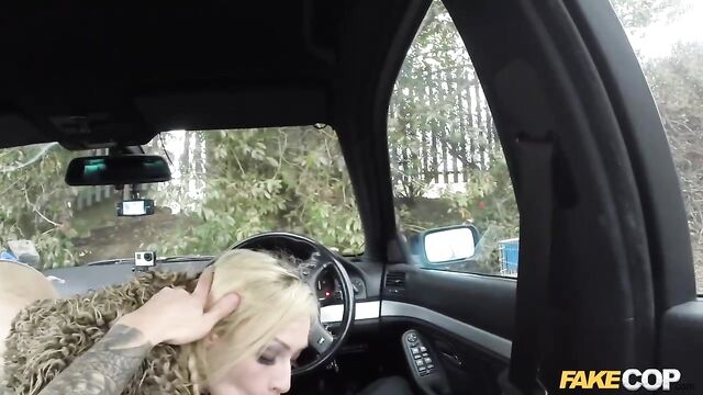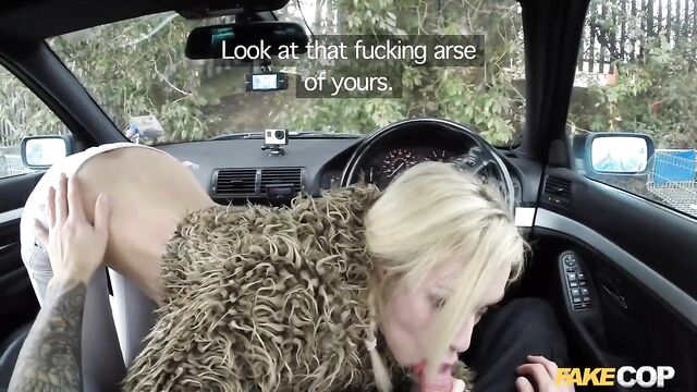 - Description: So there I was just minding my own business, sitting in my cop car just about to get something to eat when this fucking dozy blonde bumped into my car with her fucking shopping trolley. I could;t fucking believe it. She could not give a shit about what she had one, so I got her in my car for a chat. I tried to explain to her that she HD just committed criminal damage by hitting my police car with her trolley. She was not listening to a fucking word I was saying. She was to busy getting her tits out in front of my on-board cameras. She explained that she liked being filmed. She told me that her boyfriend films her when she sucks on his cock. well this conversation was only going one way. She came and sat on the front seat and started sucking on my policeman helmet. She had amazing blowjob lips and she really turned me on when she looked me straight in the eye with my cock deep down her throat. I needed more than a blowjob from her. I put my cock away and drove her to a car scrap yard that I’ve taken a few other women for a fuck. This busty blonde was more than happy to be bend over some rusty old cars while I fucked her from behind.