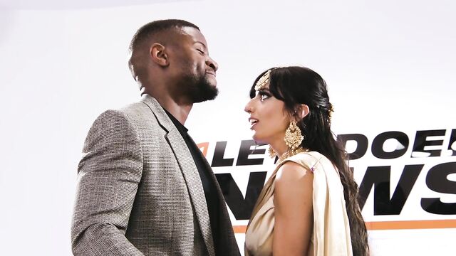- Description: Aaliyah Yasin is on a mission to promote her new movie, but her patience is wearing thin with the bumbling news anchor, Nelson Mandingo. As he takes a break to collect his thoughts, she summons her makeup team, Rebecca Volpetti and Jesus Reyes, to please her... by ordering Rebecca to give Jesus a blowjob while she masturbates. When Nelson returns, he's shocked to find the trio engaged in a lewd act. Aaliyah, unfazed, dismisses her team and takes Nelson in hand, literally. She drops to her knees, giving him a sloppy blowjob before he pounds her pussy in a frenzy of missionary and cowgirl positions. Just as things are getting intense, Jesus returns, and Aaliyah invites him to join the fray. The three of them embark on a wild threesome, culminating in a double facial that leaves Aaliyah drenched in cum.