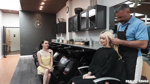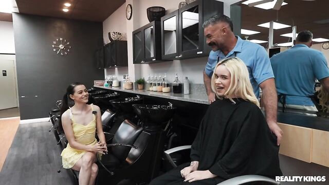 - Description: It's a very special video from your fave girl streamers, because it's blonde Khloe Kingsley's 21st birthday! Before their big night out, dark-haired Selena Love has brought her bestie to the salon for an appointment with famous stylist Charles Dera. The hairdresser's talented hands make Khloe so horny, she has to sneak to the bathroom with Selena to fool around. When Charles knocks on the door, they ask him to help, and soon both babes are sucking his cock! Charles knows all the spots where they can have sneaky sex in the salon, and the babes share his dick. Best birthday ever!