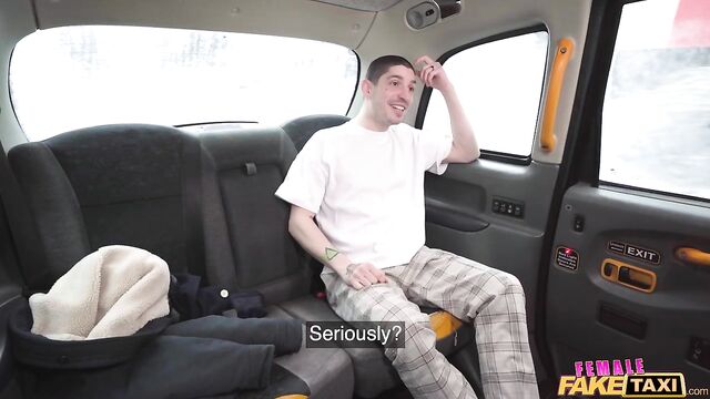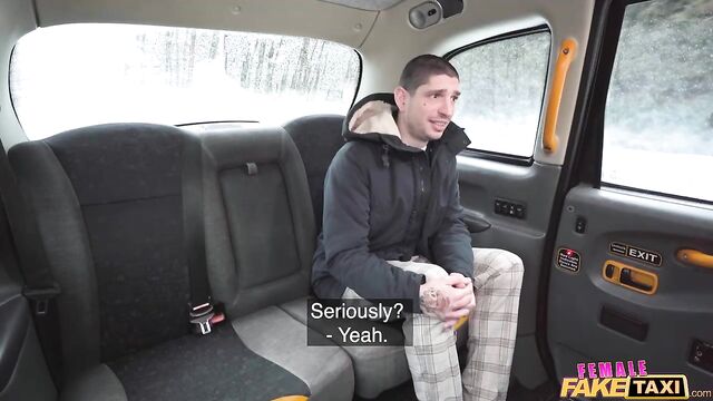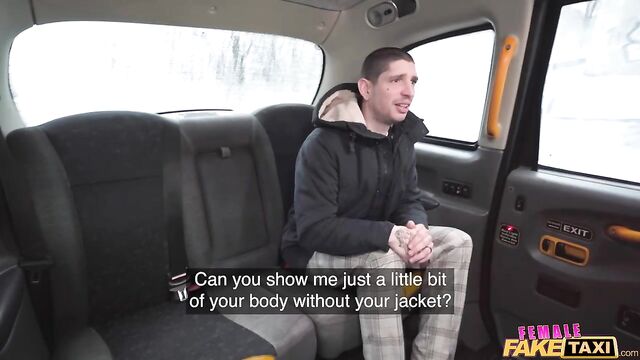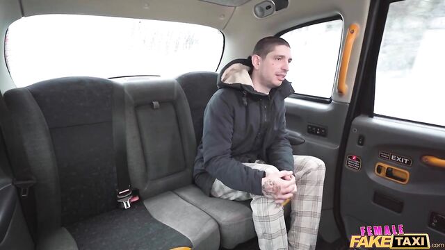 - Description: It was a cold day in Prague when I picked up this attractive guy in the Fake Taxi. He started complaining about how much he hated his job, so I suggested he work as a male dancer instead. I asked the tattooed Euro to take off his shirt so that I could see his body, and then I got him to show me his cock! After parking the cab, I joined my client in the backseat, and the sight of his long, thick dick was a huge turn-on. The dark-haired stud licked my wet pussy, and then I treated him to a deepthroat blowjob before straddling his lap cowgirl-style while he played with my big boobs. I was still feeling horny, so we did some spooning in the back of the taxi, and then I spread my legs and invited my well-hung client to bang me in missionary position until he pulled out and came all over me!