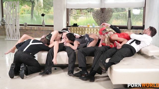 - Description: After spending the afternoon sucking each other’s clits ( this you find in yesterday 2021 dec 31 scene ) Alyssa and Polly put their costumes on and gear up for the night’s party. Once Shalina Devine and the guys arrive at the house for the 1020's party, it doesn’t take long for legs to opened and cocks to be pulled out. Kristof, Erik, and David then take turns DP’ing the three sluts before blowing their loads.