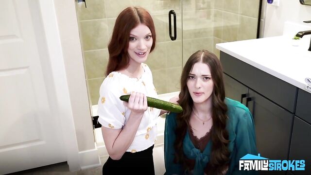 - Description: A girl at school spread a rumour about me, saying that I'm bad at sex. I asked my stepmom and stepsister for help, but it turns out my stepsister was going through the same thing. How do I know? Because I caught our stepmom teaching her how to suck a cock with the biggest cucumber I've ever seen! Based on what I can tell, I don't think she needed much help, but since I was there, my stepmom thought it would be easier to show her how to do it if she sucked my dick. My stepsister learned how to give a blowjob like a pornstar in no time. When it was my turn, my stepmom wore a strap-on dildo and pounded my stepsister, teaching me how to move to make her cum and fuck her harder. Once I saw her do it, it was my turn to try it with both of them.