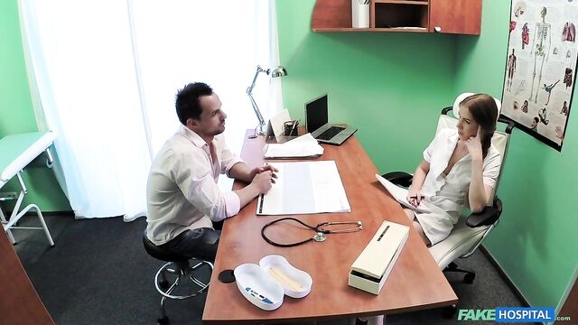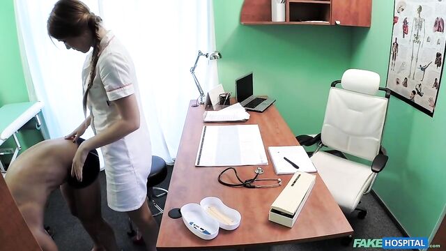 - Description: A nurse can get up to a lot of mischief, if she so wishes. Today I noticed a hunk of a guy going into the doctors office, so I stopped the doctor outside and told him of an emergency down the hall, and that I would take good care of his patient. So I went in and quickly established that his problem, required him to strip off for a good examination of his muscles. What a physique! I could see that he must work out 3 or 4 times a week, every week. Yummy. After I showed him a few stretching exercises, I proposed we exercise his ankle amongst other bodily equipment in the doctors office. I first set about working my mouth around his hard tool and then let him lick my soaking wet pussy. From here we fucked across the desk and chairs, finishing up by me swallowing all his cum in my mouth. Maybe I'll meet this patient again, maybe not? But I hope so.