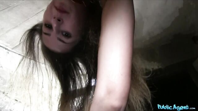 - Description: I was walking around with my camera looking for models on the street. Much easier way to find girls than through advertising (and cheaper!). So, I see this babe, a smokin' hot long haired brunette! I stopped her and introduced myself, she was very approachable, probably used to guys coming up to her I guess! I asked her about her work, apparently she's a model at the moment, earning okay money. But just okay. I knew I could make her a better offer. I offered her a wad of cash just for a quick casting. All I needed was to get a good shot of her figure and that was it. She thought about it but then decided she really couldn't turn down the opportunity! So we found this place at the bottom of a stairwell, not the best looking place but I needed to see this girls body! And boy was I right! She had a perfect body with amazing big tits! I knew I had to try it on with her. I offered her a LOAD more cash for 'some fun'. She knew what I meant straightaway and seconds after I handed her the money her lips were wrapped firmly around my cock! She was working it like a pro! Licking it up and down and staring straight up at me! I set the camera up on the side, pulled down her panties and started fucking her! It felt so good! We had a close call of getting caught, we were in a public place after all! But we had just enough time for me to empty my load all over her massive tits!