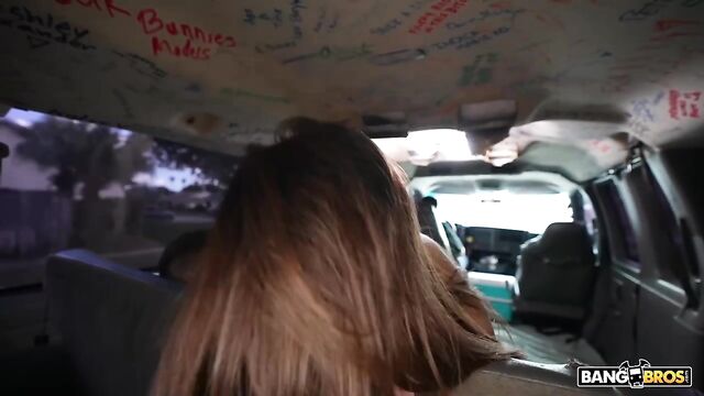 - Description: Alana Rose was walking home when that famous van pulled up next to her. The van was so famous that she knew immediately what it was. All the signatures on the ceiling of the car. Yes this was the Bang Bus. She was a content creator herself. As a content creator you want to create content all the time. She wanted to get on the bus. In no time she was in showing off her cute tits and ass and masturbated until Tony Rubino got horny and pulled out his dick. She sucked it and started to ride him. Then they fucked until he came on her ass after a doggy.