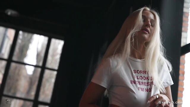 - Description: Irresistible and tall, this blonde goddess can't stop seducing. Her name is Solar Girl. She stands out for her flawless figure, natural breasts, long legs, and blonde hair caressing her gorgeous back while she dances. Video Release 689 is packed with naughty energy and the stunner's unique style. This StasyQ model rocks high heels, red panties, and a crop-top that barely covers her bosom. Restless and ready to blow your mind, Solar Girl starts undressing. The top is the first to hit the floor. Her nipples quickly harden, standing as proof of her excitement. The panties are next. The light-haired seductress plays with them as her palms explore her firm behind. Unable to control herself anymore, Solar Girl lies on a nearby sofa, leaves nothing on but her heels, and continues to explore her immaculate body. Her gaze is fixed on you the entire time. Solar Girl begs for your attention.