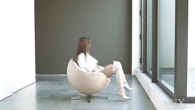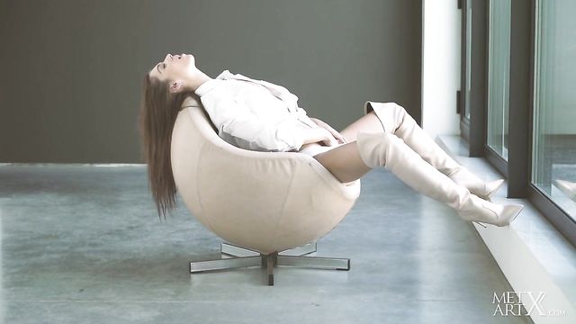 - Description: Sexy brunette Sabrisse A looks sizzling hot in thigh high white boots. With a sassy smile, she unbuttons her shirt to reveal her slender body, running her hands over her erect nipples and into her white cotton panties to touch her pussy. Breathing heavily, she tugs her panties aside as she rubs her clit, then takes them off altogether so she can masturbate with both hands, driving herself to an explosive orgasm. Her cute, bashful smile says it all…