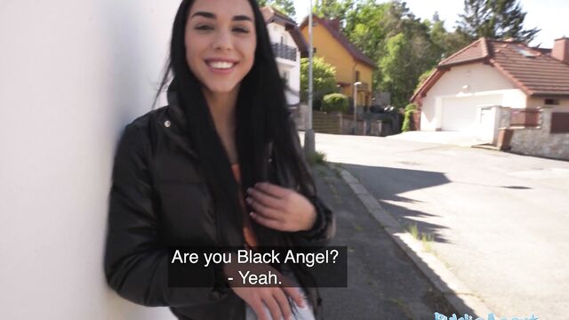 Cumshot video with passionate Black Angel XXX from Public Agent