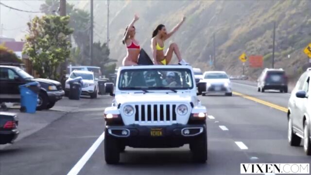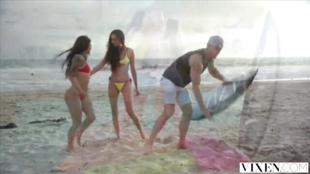 Creampie scene with passionate Eliza Ibarra, Gina Valentina and Johnny Sins from Vixen