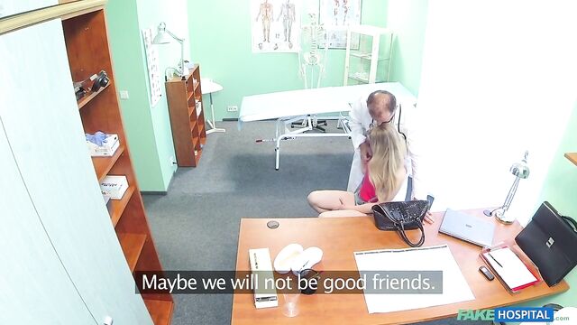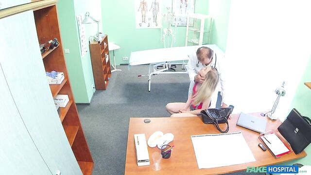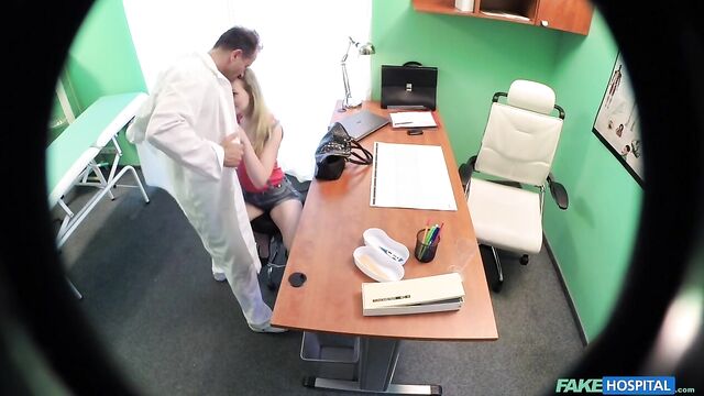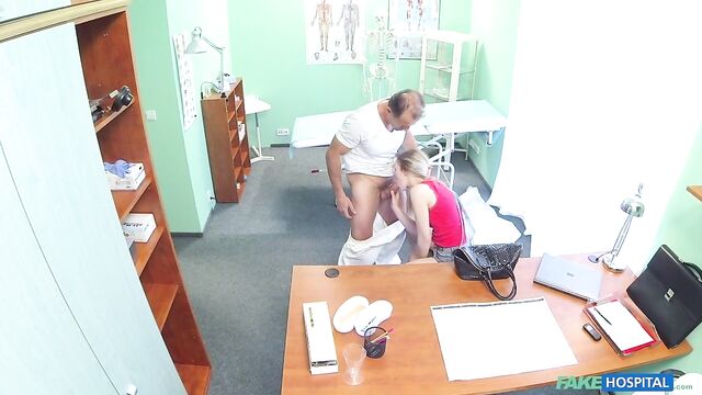 - Description: This super sexy, slim blonde strolled into the office saying she had been sent to see me to inquire after a job as a nurse here at the hospital. I don't have any job vacancies at this time but one of my nurses would be going on maternity leave in the near future and it soon transpired she was a friend of my other nurse Tracy, who had told her we would be looking for someone when that time came. I proceeded with the interview, but I was a bit nervous as I wasn't sure exactly how much Tracy had told her of what goes on here at the hospital. I needn't have worried, as she began to flirt with me more and more I understood that Tracy had told her everything and she wanted to make sure that I gave her the job when the opportunity arose. It wasn't long before we were locked in an embrace and then she was pulling my trousers down as she eagerly stuffed my cock into her mouth. This job interview was in full swing and she was very impressive. I got her onto my desk so I could taste her pussy which was wet with desire. This woman was driving me wild and I could resist no longer and I slid my cock deep into her velvet pussy. We fucked in a few positions, maneuvering around the office as she did her best to impress her boss. If she works half as good as she fucks she will fit right in here. She got me so excited that when it was time to blow my load it shot high into the air and all over the office. I can definitely say that she was successful and she'd be hearing from us very soon.
