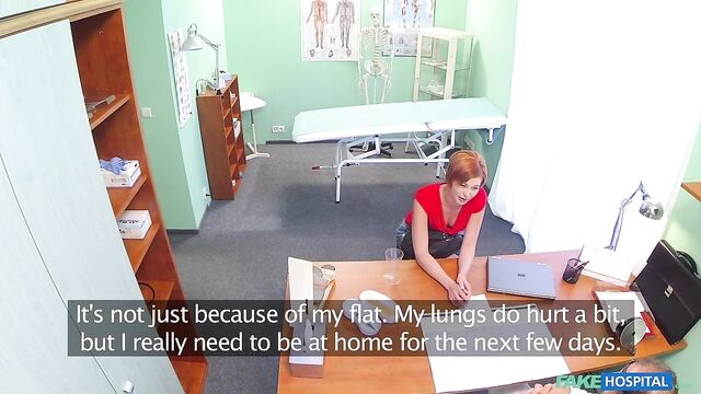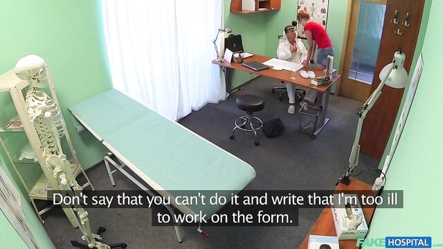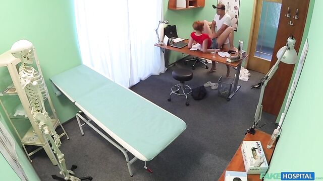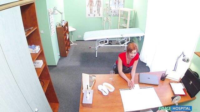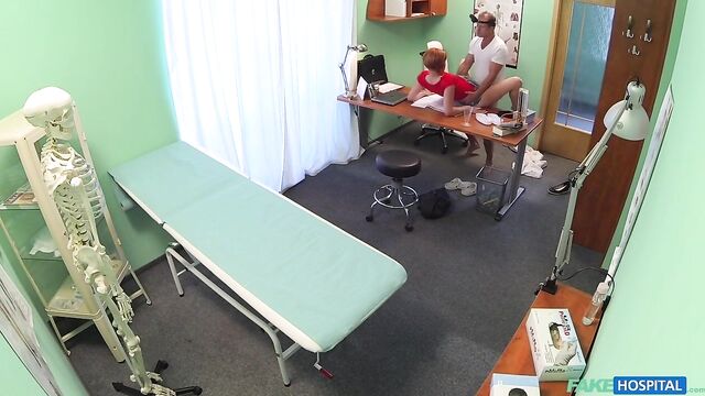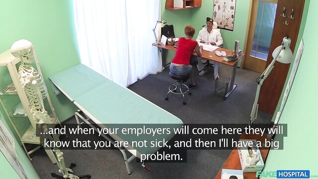 - Description: It had been a quiet morning at the hospital and I was looking forward to seeing my next patient to see if I could spice it up. In walked a stunning redhead with a short skirt and an infectious smile. She told me she had a cold and a cough but upon my initial inspection I could find nothing wrong with her. When I told her I could prescribe her nothing as nothing was wrong, she produced a document in front of me asking me to sign it. It turns out this sexy redhead wasn't ill at all, but wanted me to sign her off work for eight days sick so she could decorate her apartment. Well, as a consummate professional this was something I would not normally do, but this sexy redhead seemed to really badly need the time off. She walked over to me and began to flirt with me, striking a deal that I would sign it by slipping my cock into her hot mouth. This surgery session was in full swing and I made her earn her days off work as I fucked her in all manner of positions all over the office. She was an incredible fuck, her tight pussy seizing my dick and milking it for my medical waste. After fucking her to my hearts content I decided to take the safety trigger off my balls as I pounded into her hard from behind before pulling out and shooting a ribbon of spunk all over my arm and her pert ass cheeks. I hope she needs more time off work in the near future.