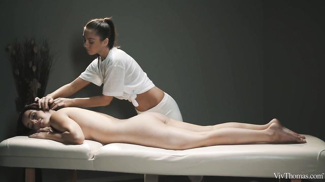 - Description: Gorgeous brunette Petra F strips naked, ready for her session with sexy masseuse Sabrisse, as episode three of Nik Fox’s erotic movie series "Full Body Massage" begins. She perches on the massage table wrapped in a towel until Sabrisse removes it – revealing her big natural breasts – and gets her to lie face down and relax. The masterful masseuse looks so demure with her hair up in a ponytail as she caresses the full length of her client’s body, before pouring oil on her back and massaging it into her silky-smooth skin. Petra sighs with pleasure as Sabrisse kneads her back and trails her magic hands over her ass, working the oil into her cheeks and crack, and running her fingertips tantalizingly over her puckered hole. Sabrisse instructs Petra to roll onto her back and she repeats the process to her front, massaging the oil into her beautiful breasts, causing her nipples to stiffen rapidly. As Sabrisse’s oily hands glide over Petra’s slick body, she leans forward and starts kissing her passionately, slipping a hand between her legs and working her fingers in and out of her shaved pussy’s glistening folds. Petra floats in a dreamy state between relaxation and arousal, but she snaps out of her blissful trance when Sabrisse takes off her tight yoga pants and straddles her on the table. The horny masseuse pours oil over her top and rubs her body against Petra’s, stroking her pussy as she writhes on top of her. She gets naked, her tanned body shining with oil, and goes down to finger-bang Petra’s slick slit. Turning around into a sixty-nine, Sabrisse grinds her pretty pussy down on Petra’s mouth, moaning out her pleasure as her new lover’s tongue dips inside her. Petra goes face down, ass up for Sabrisse to frig her to orgasm, then makes her irresistible masseuse climax on her slippery fingers, leaving them both smiling and sated.