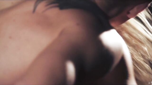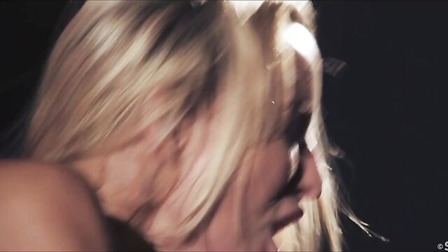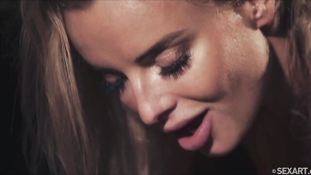 - Description: Sexy blonde Emma Button sits opposite Pavlos, devouring him with her eyes, as Andrej Lupin’s atmospheric "Shadows" begins. Illuminated by a spotlight in the dark room, seductive Emma raises her heel-clad foot for Pavlos to kiss, but pushes him back in his seat when he attempts to get closer. She takes off her sheer wrap, revealing her beautiful body in black lingerie; she leans in to kiss and caress her man, making it clear with every touch that she is in charge. He watches avidly as she takes off her bra – her nipples stiff – straddles him and grinds her panty-clad pussy in his lap. He gasps appreciatively as she tugs down his shorts and long-licks his hard cock, then takes it between her luscious lips and sucks it hungrily, looking into his eyes to drive him wild. She allows him to worship her breasts and stroke her through her panties, before taking them off and sitting astride him once again, guiding his erection into her shaved pussy. She bounces up and down on him energetically, intent on her own pleasure, long hair flying around as she rides. Turning into reverse cowgirl, she fucks herself on his cock, head thrown back as she moans with arousal. Finally allowing her lover to take the reins, the irresistible maneater bends over for Pavlos to slam into her from behind. He screws her through an intense orgasm before she pushes him back into his chair and jerks him to a sticky finish, asserting her dominance to the very last moment.