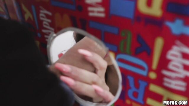 - Description: When Vienna Black does a birthday, she does it dirty! Her man comes home to find a life-sized giftbox with a gloryhole, and after a deepthroat BJ, the ebony spinner presents his real gift: her tight asshole for their first anal sex!