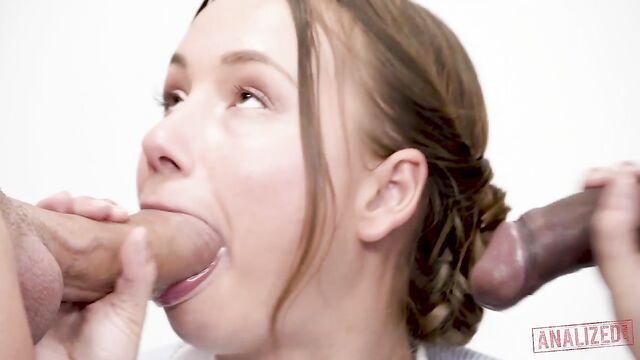 - Description: Having someone clean up your mess and house has always been a nice thing. Taylor Sands demonstrates this nice service by going an extra mile to properly show people how awesome it is. In this scene, she’s about to clean up her employer’s dicks to… you know, prove a point. Taylor was just going around the house and cleans what she deem dirty. Her employer eventually walks up to her and asks her to clean their dicks. This slut of a house maid is now sandwiched between two large dicked individuals and deep inside, she’s liking it. She starts giving them a handjob simultaneously. Taylor eventually drop down to her knees and starts hand jobbing and sucking on the dicks. After that, they dragged her to a nearby bed and bends her over. The two guys agreed to get territorial on her body. As one get busy with her mouth and face fucking her, the other gets busy on her fuck holes below the waist. The guy at the pussy duty is a BBC and starts fucking her hole she call a vagina. He starts pumping and owning this maid as his own. The two guys was nice enough to share her fuck holes after some point. They exchanged and took turns on giving her the dick in different points of her body. But this was not that peak yet. After getting busy with her pussy and mouth, the two agreed to give Taylor the double penetration that she was secretly wanting all along. The dudes gives her what she wants and goes at it until they can’t keep the cum in their dicks anymore. Taylor Sands drops down to her knees and starts giving the dicks the final treatment until she got showered with the cum she’s been working hard for. The two then made her mouth into a cu disposal. They jacked off their dicks as a wide-opened mouth is under their dicks waiting for their seed.