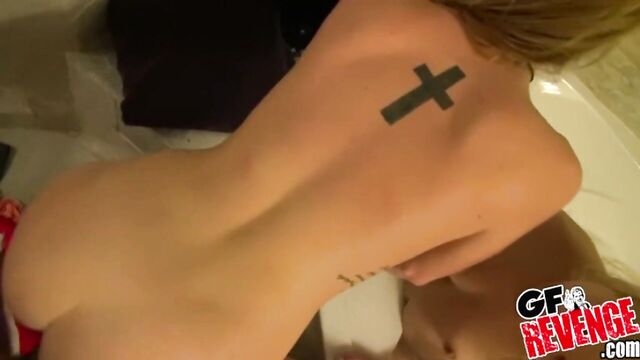 - Description: Alex and Sally were just being girly and having fun with each other joking and taking selfies in the bathroom. Sally's boyfriend heard them and decided to intrude on their moment with his camera. He only meant to film them on their last day together before Alex headed off to college. But when he saw those sexy bodies and thongs, he started having naughty thoughts. The ladies sort of rejected his suggestion of a video, but didn't fight him on it when he kept filming them. Quickly, the selfies got more and more revealing, as titties started coming out. Then they started kissing and playing with each others tits and pussies. He could see where this was going, so he suggested that they hop in the tub together for a nice sudsy experience. After a while of convincing, they finally went for it. The girls initially just flirted, but that soon became all-out pussy eating. By then he was rock hard and wanted in on the action. Being such an awesome girlfriend, Sally thought of her man, pulled down his pants, and both the ladies started sucking away on his cock. It wasn't long before he was switching up between their pussies in a wild threesome and banging those HOT snatches right there in the bathroom. But in the end, he had enough jizz for both ladies and busted all over their sexy asses.