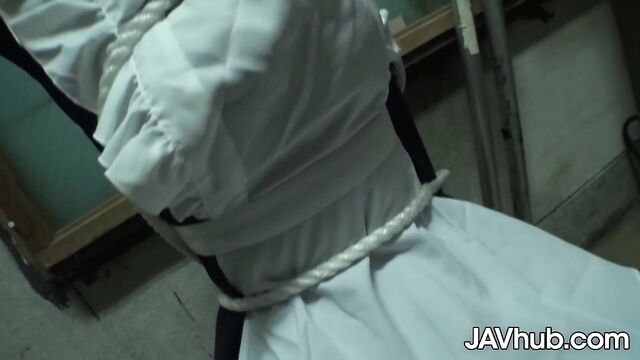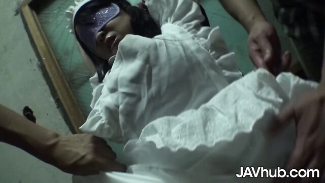 - Description: Yui Satonaka finds herself bound and blindfolded with a room full of guys that want to molest her. First they expose her big tits to suck and fondle. Then they take the rest of her maid outfit off and start with a variety of toys to stuff up her hairy pussy and vibrate her aroused clit. They have her suck on their dicks before laying her on the bed and covering her naked body with whipped cre