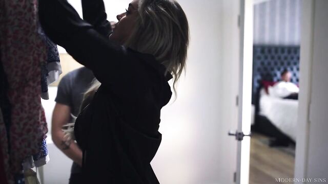 - Description: Kali Roses is happily rolling around in bed with her lover, Nathan Bronson, but their joy is short-lived when they hear Kali's boyfriend, Johnny Goodluck, arriving home earlier than expected. Kali and Nathan are both shocked as they try to figure out what they're going to do, which leads to Kali pushing Nathan into the closet, out of sight.When Johnny enters the bedroom, it's revealed that he's been sent to work from home that day after a mishap. As he settles onto the bed with his laptop to catch up, he's unaware that he's a mere few feet away from Nathan, who is trying his best to be quiet. But being so sneaky right under her boyfriend's nose seems to be a huge turn on for Kali, as she begins sneaking back into the closet to steal kisses from Nathan whenever she has a chance. Feeling emboldened, this turns into Kali getting onto her knees and sucking Nathan's cock as well.Eventually, Johnny steps too close for comfort to the closet and Kali intercepts him. Of course, now that her back is turned, it's Nathan's turn to be the naughty one while fucking her from behind. It's clear that playing with fire like this is exciting for BOTH of them, but if they're not careful, they could get burned...