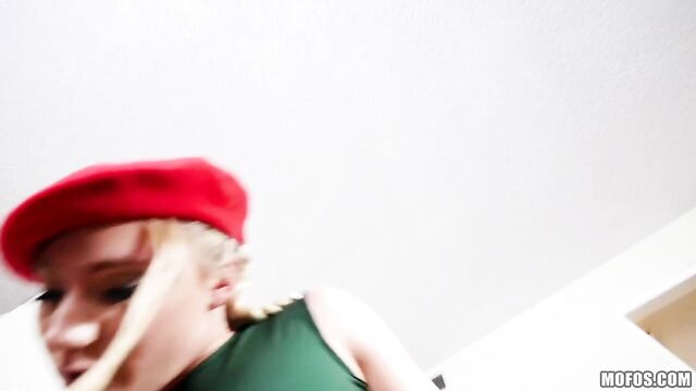 - Description: AJ's BF helps her with a cosplay shoot for her vid channel, and he can't take his eyes off her juicy bubble butt! After some teasing, the horny blonde pulls out his big cock and rides it fighting game style right on the living room floor!