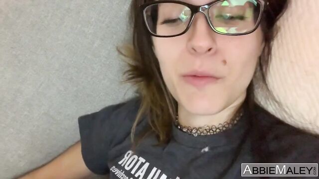 - Description: Sexy, fit Abbie Maley is lounging in her glasses and a t-shirt before stripping down to her tiny pink panties and putting on a show for the camera. Abbie can't help but be a tease, slowly showing off her natural body and incredible ass, giving us all the angles we never knew we needed. She slides her panties to the side revealing her tight pussy only to cover it back up making you yearn for more. She beds over again giving us a great view of her perfect ass, spreads her legs and slides her fingers in and out of her pussy.